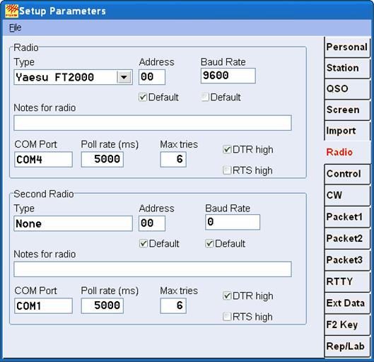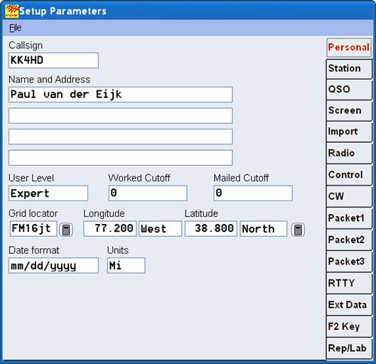 The following screens show all the setup information the user can provide. Beginning users only will have to specify a few of these parameters to get going. But as you learn to appreciate the power of DX4WIN, you will come back to these screens more often. |